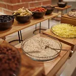 Her sabah konuklar restoranda kahvaltı edebilir. Her akşam Ribiceva Kantina pizza restoranında akşam yemeği sunulmaktadır. Konaklama tesisi, misafirleri bahçe barına içecek almak için davet etmektedir.